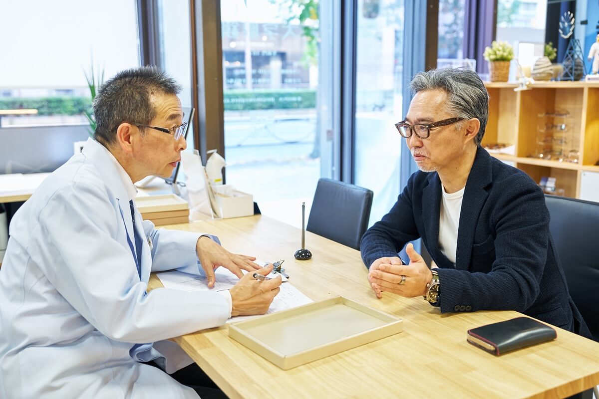 そんな中兼様の眼鏡をつくるために、まずは半蔵門にある店舗にご来店いただき、普段と同じように細かいヒアリングから目の検査、最適なレンズ選定、そしてお好みや使いやすさに合わせた最適なフレームを選んでいきます。