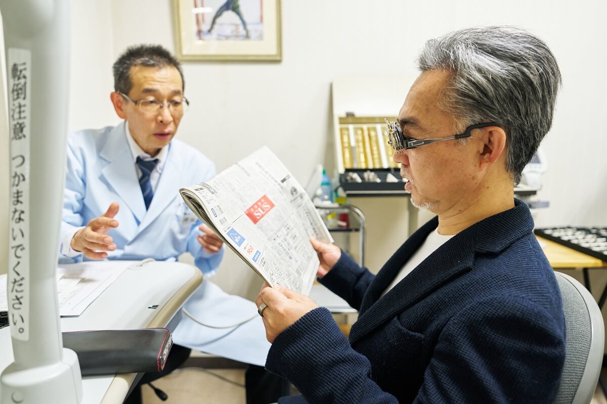 もちろん近くの見え方も確認。ひとつの眼鏡で手元もストレスなく見えるのが遠近両用のメリットです。