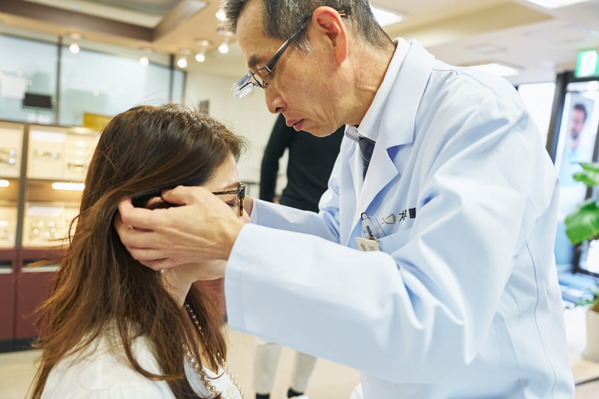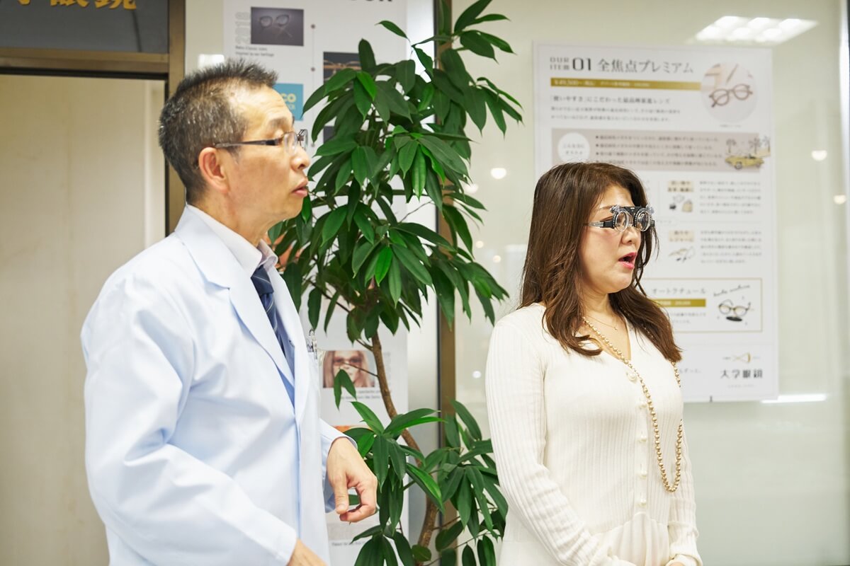 はじめて遠近両用レンズをつくられる国広様が、違和感を覚えないように万全な検査を。