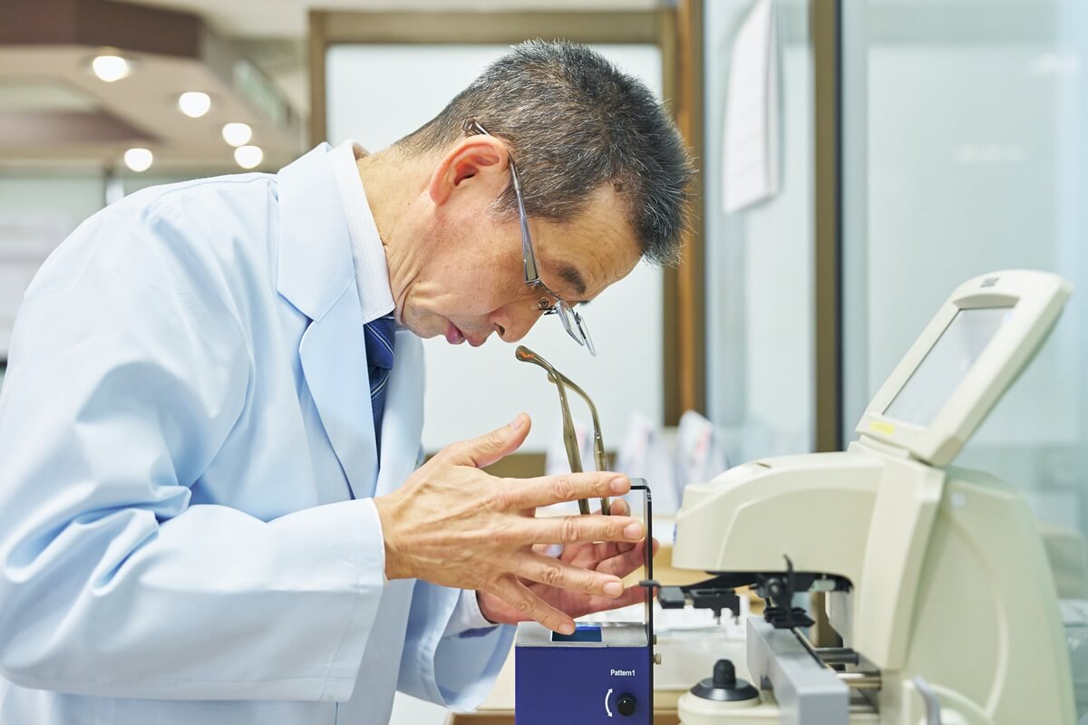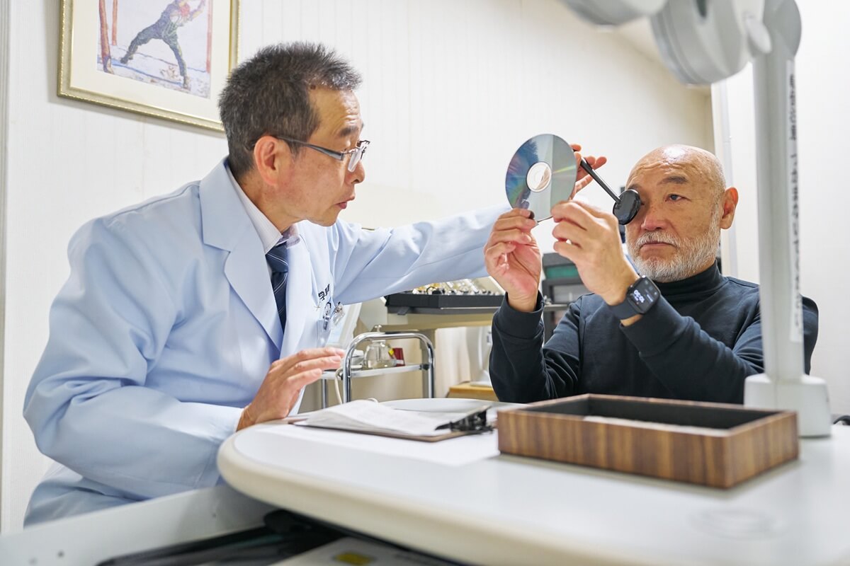 意外と把握していない「効き目」の確認も、最適な眼鏡をつくる上で重要な情報に。